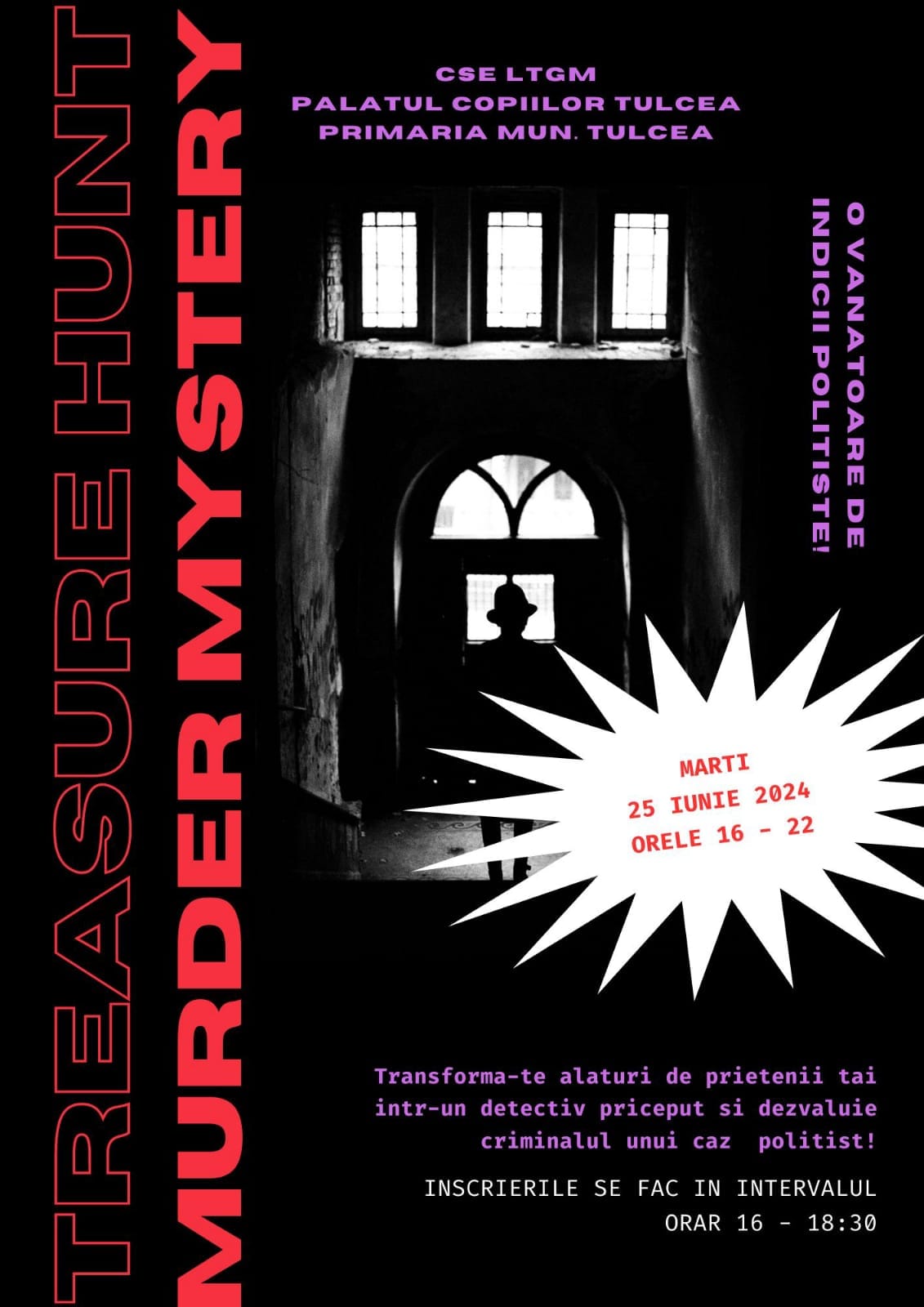 Elevii și tinerii din orașul nostru care doresc să-și testeze abilitățile de detectivi pot participa la evenimentul intitulat „Murder Mystery...