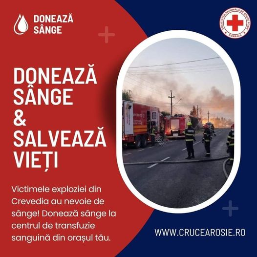 Începând de azi, 28 august 2023, putem dona la Centrul de Transfuzii Sanguine Tulcea, str. Alunișiului, nr.15, pentru a ajuta victimele exploziei...