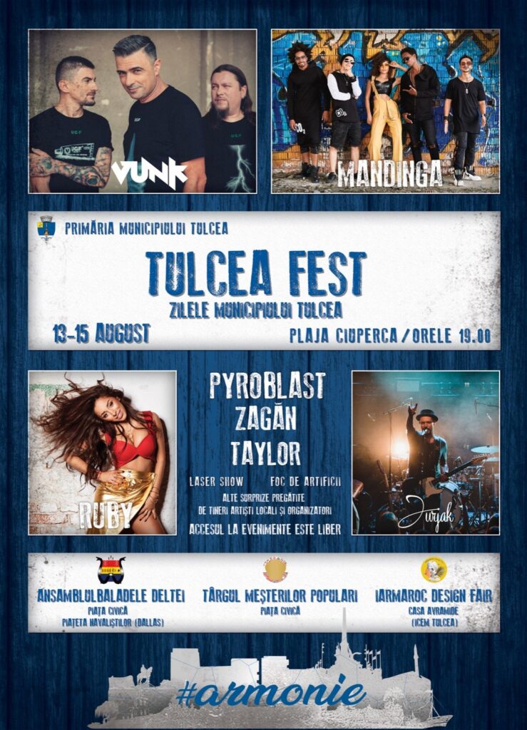 Zilele Municipiului Tulcea 2022TULCEA FEST - Zilele Municipiului Tulcea. 13-15 august PLAJA CIUPERCA. 13-15 august. Concerte (începând cu orele 19.00): Sâmbătă, 13...