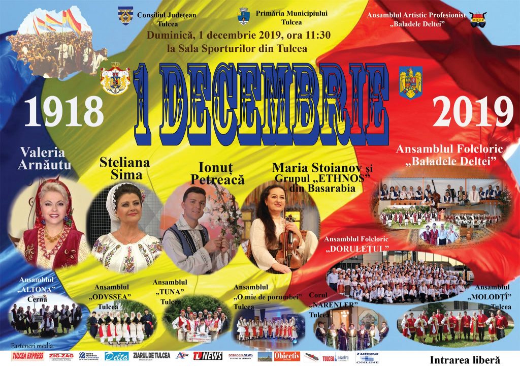 1 Decembrie 2019Tulcea, prin Ansamblul Artistic „Baladele Deltei“ organizează duminică, 1 decembrie 2019, începând cu ora 11.30, la Sala Polivalentă, spectacolul...
