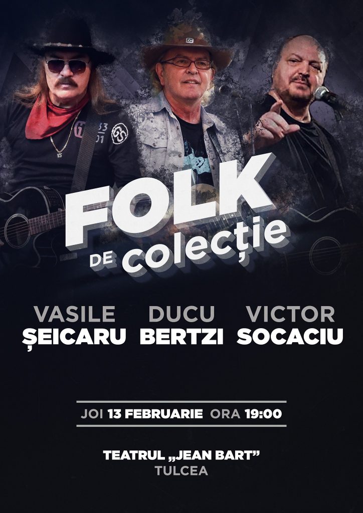 Folk de colectieTrei celebri cantautori, vor aduce în scenă o parte din abecedarul folk, clasic! Veți asculta pe lângă piese mai noi, cântece devenite în ani,...