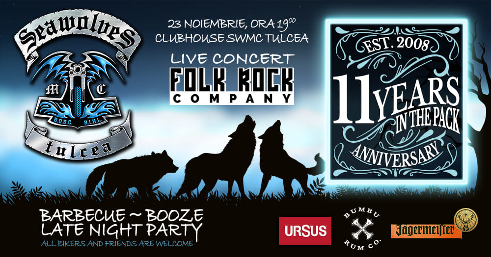 11 Years In The PACKSeawolves MC Tulcea asteapta toti bikerii pe 23 noiembrie, ora 19:00 pentru a sarbatori 11 ani alaturi de prieteni. Concert LIVE Folk ROCK...