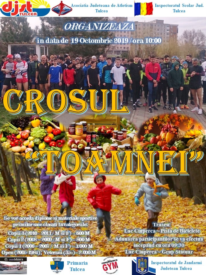 Crosul ToamneiCROSUL TOAMNEI ~ 19.10.2019 / ora 10:00 DJST Tulcea, va invita Sambata - 19 Octombrie, sa luati parte la evenimentul sportiv - Crosul Toamnei....