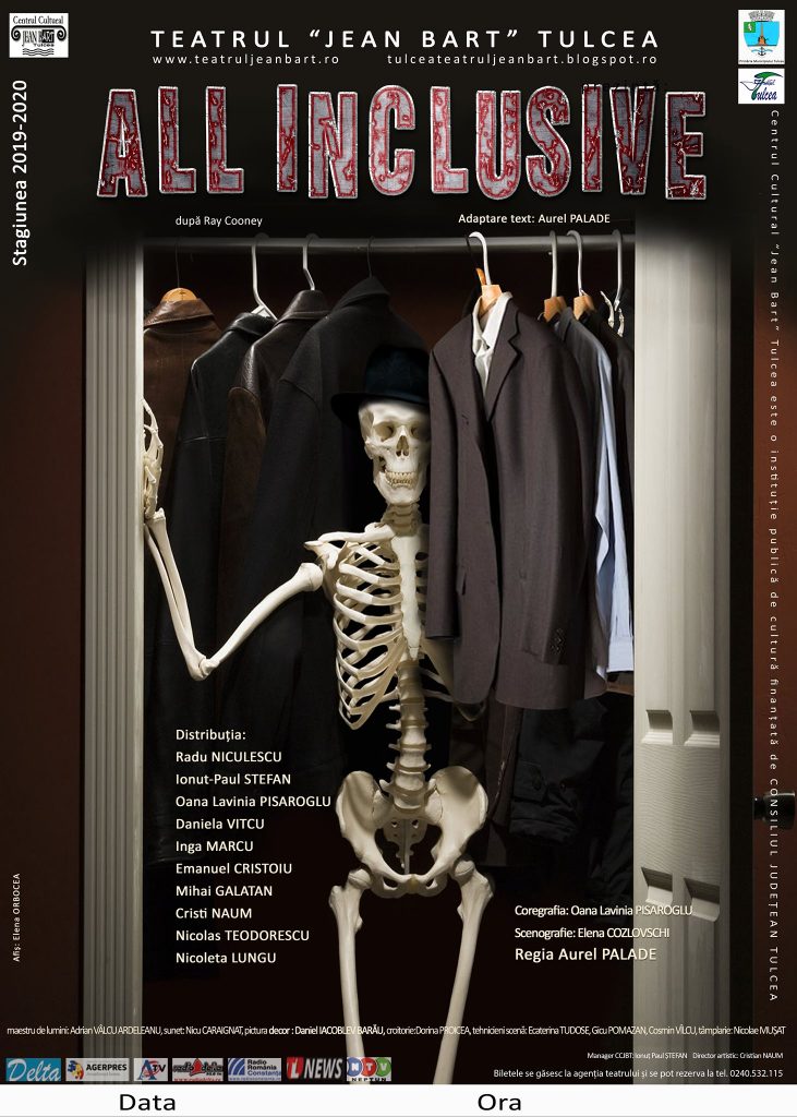 All InclusiveTeatrul ,,Jean Bart” Tulcea vă invită la spectacolul ,,All Inclusive” după Ray Cooney, regia: Aurel Palade, duminică, 26 ianuarie 2020, ora 19:00....