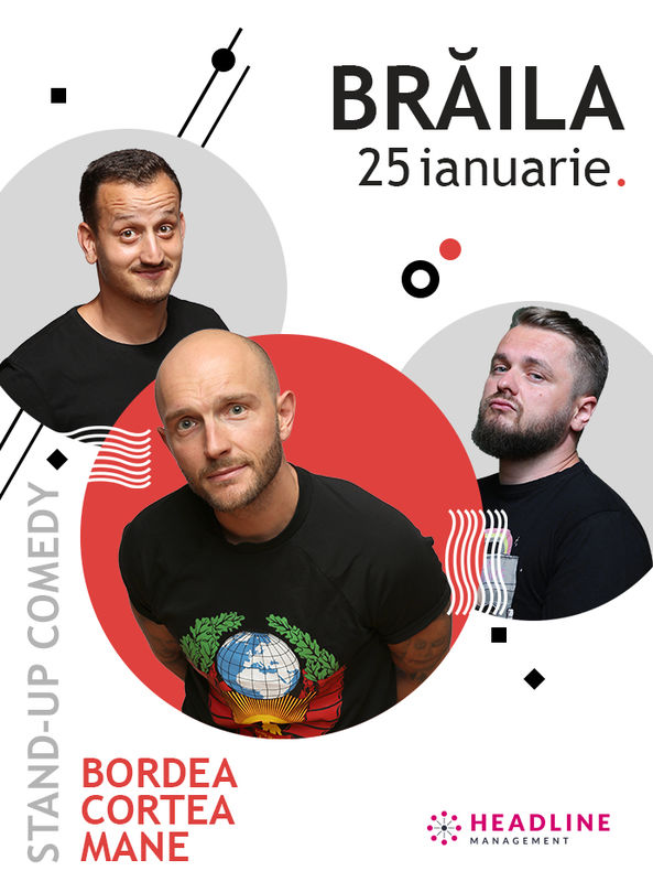 Stand-up comedy cu Bordea, Cortea și Mane VoicuSâmbătă, 24 ianuarie 2020, de la ora 19:00, Teatrul ,,Jean Bart” Tulcea vă invită la Stand-up comedy cu Bordea, Cortea și Mane Voicu. Pret...