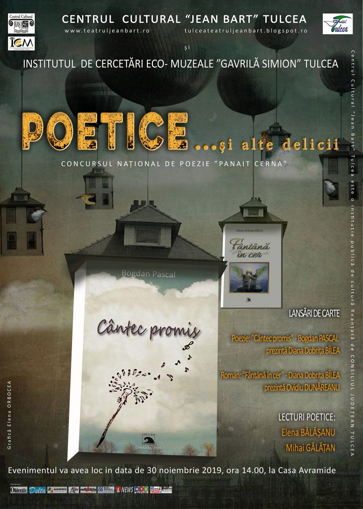 Poetice și alte deliciiCentrul Cultural ,,Jean Bart” Tulcea și Institutul de Cercetări Eco-Muzeale ,,Gavrilă Simion” vă invită să participați sâmbătă, 30 noiembrie 2019,...